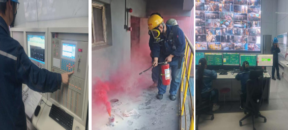 本次演練結合以往發(fā)生的電氣設備起火案例,吸取經驗教訓,警示大家要時刻保持警惕,增強消防安全意識。隨著中控室消防主機急促報警,同時綜合樓四樓電纜層模擬煙霧擴散,演練開始。當班班長權浩鈞按照消防報警主機應急處置流程利用應急廣播對二樓辦公區(qū)三樓化驗室進行應急疏散,生產部接到火災事故匯報立即組織應急處置人員穿戴好空呼到起火點進行火災初期的應急處置,經過10分鐘應急處置,火勢得到控制,二樓辦公區(qū)三樓化驗室也同步完成清場。